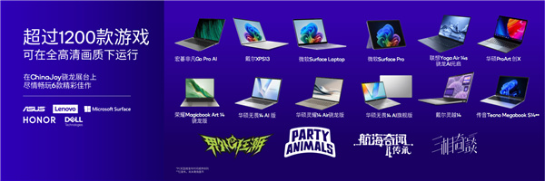 今年的ChinaJoy上,玩家可以現場體驗來自華碩、聯想、微軟、榮耀、戴爾的驍龍X系列筆記本,暢玩《界外狂潮》《猛獸派對》《航海奇聞:傳承》《三相奇談》等六款精彩遊戲。