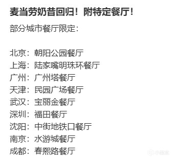 不过,此次回归并非全国性推广,而是采取小范围试点的形式,且暂未公布具体回归的口味,仅表示需等待正式开售时查看菜单。但是,已有部分网友透露了将推出的门店信息,具体资料如下: