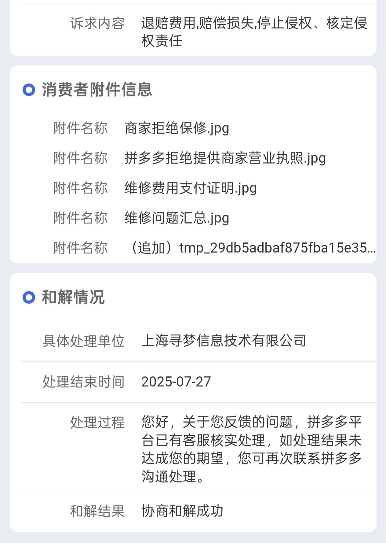 没办法只能去12315投诉pdd。但有一个很有意思的点,投诉后的第11天投诉就变成了和解成功,但此时我和pdd都完全没谈好,第一个客服直接跑了没后续。哎,无形的大手,看来去12315没用了