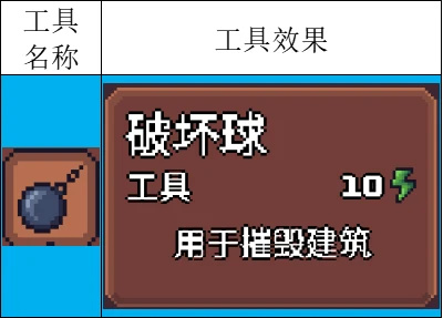 遊戲中分爲六種可升級農具,和一種不可升級的破壞球。