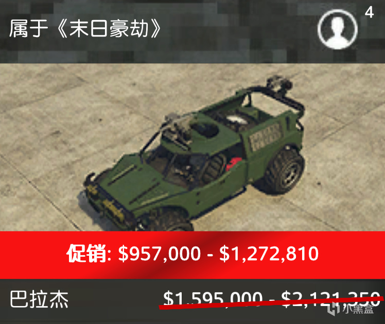 解鎖批發價條件:以搶劫任務隊長的身份完成末日豪劫的“巴拉傑”準備任務即可解鎖此載具的批發價