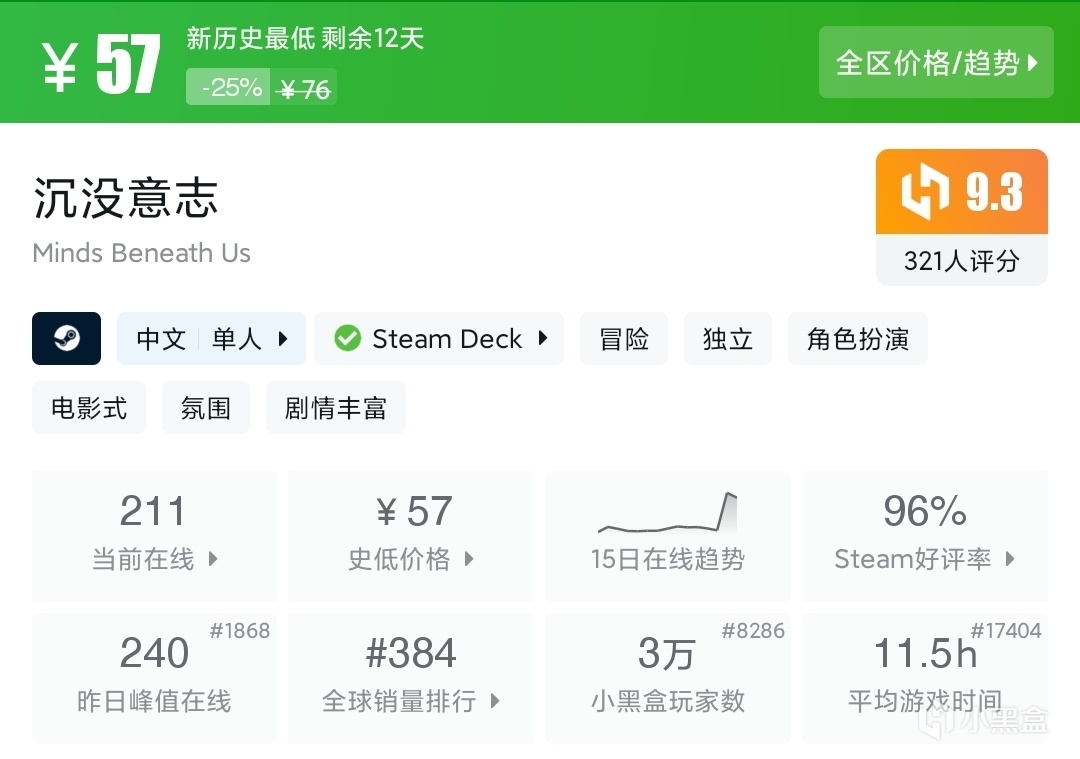 夏促剛有的新史低,當時沒入手的,現在機會又來了。遊玩時記得配上防僞BGM