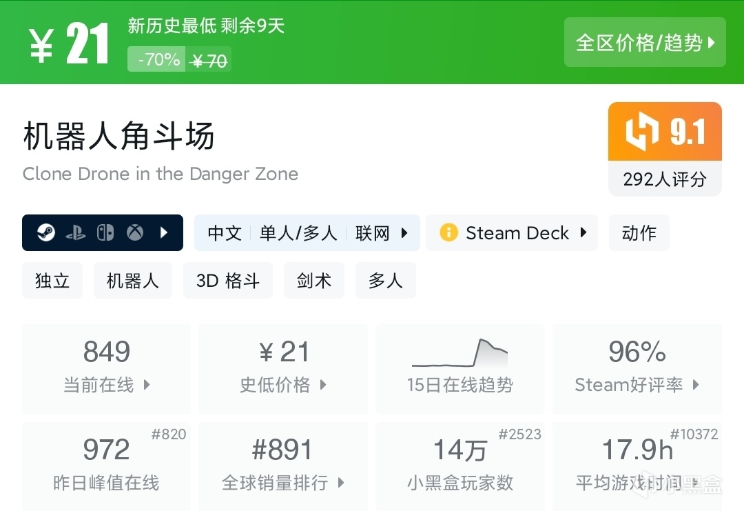 童年經典,小時候在4399上玩過。現在steam雖然不是史低,但小黑盒cdk券後已經是超史低13.86元。目前最終大結局也已經推出。正統完全版,屬於補票好時機。