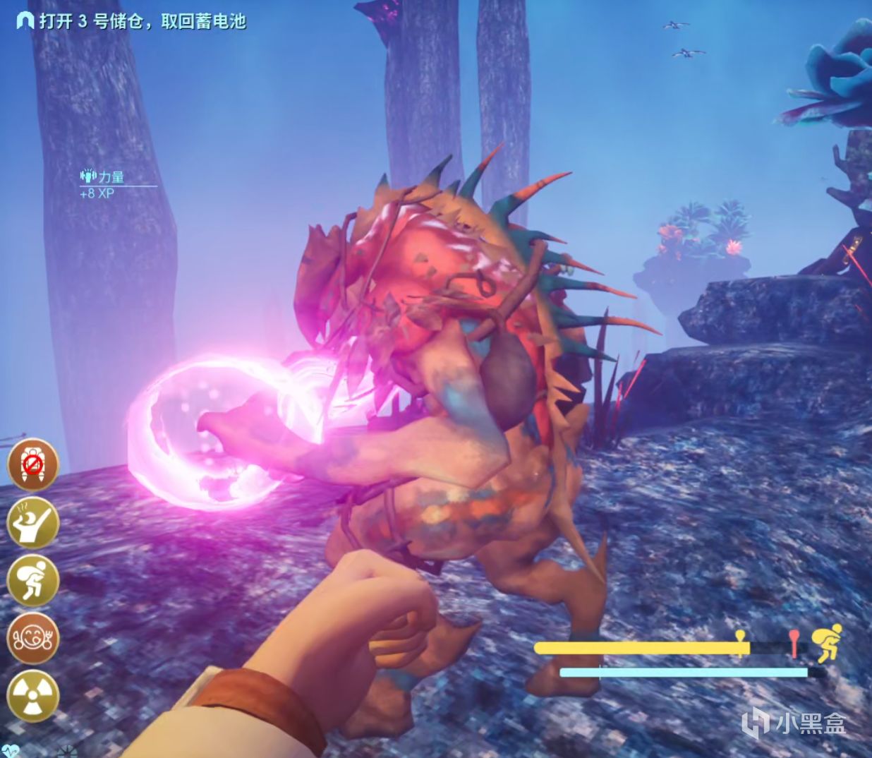 浅浅我个人认为前期不吃喝了,状态不对,直接找个怪自杀,咱们的背包物品全在死亡地点,《非生物因素》没有死亡惩罚这一点还是不错滴,重生状态回升至约75% ,不过收集的食物时间长了会腐败,放冰箱里可减慢腐败时间,去探索其他区域带上食物和水可以走的更远