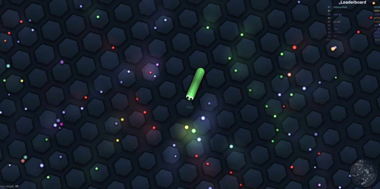 就是一个能在线和全球玩家一起玩贪吃蛇的游戏,鼠标控制它的方向,长按左键可以加速