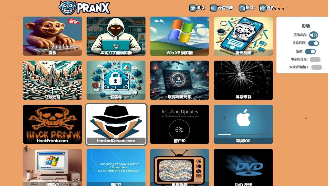 这里有各式各样的恶作剧工具,操作简单,能帮你轻松恶搞朋友。比如模拟电脑蓝屏、假的病毒警告,还有虚假的系统更新,进度条永远走不完,让人干着急。你还能使用黑客终端打字器,飞速滚动的代码,瞬间化身神秘黑客。Windows XP模拟器也不容错过,经典界面与音效,带你一秒穿越回过去。