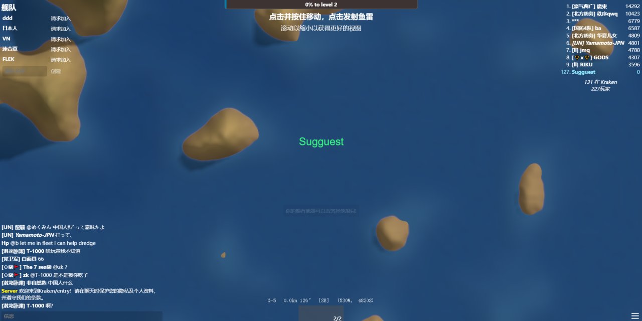 这是一个多人在线海战游戏,我们可以选择一艘战舰来开始游戏,可以发射鱼雷,导弹等武器还可以通过收集海上的板条箱和油桶增加积分,升级船只,使用更多的武器,还可以创建房间,与好友一同游玩