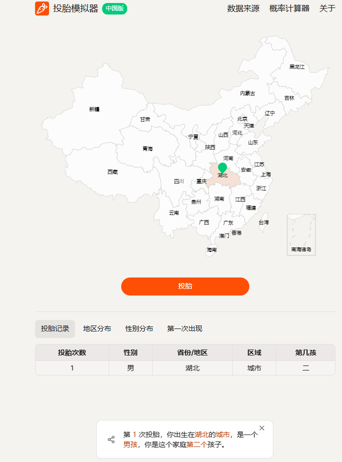 这是一个来模拟你下辈子会出生在哪里的模拟器