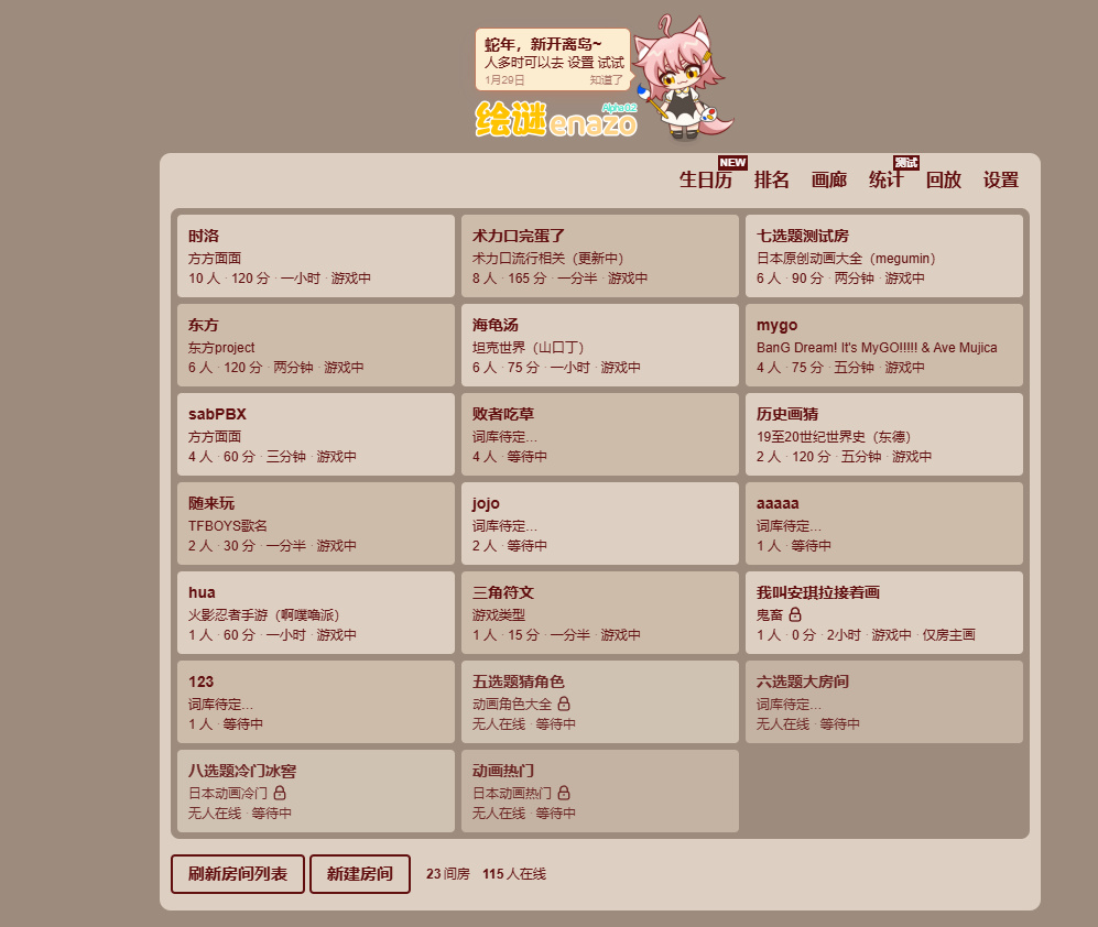 网页版你画我猜不需要登录,点击就能开玩,可以加入别人的房间一起玩游戏,也可以创建私密的房间和好友一起玩
