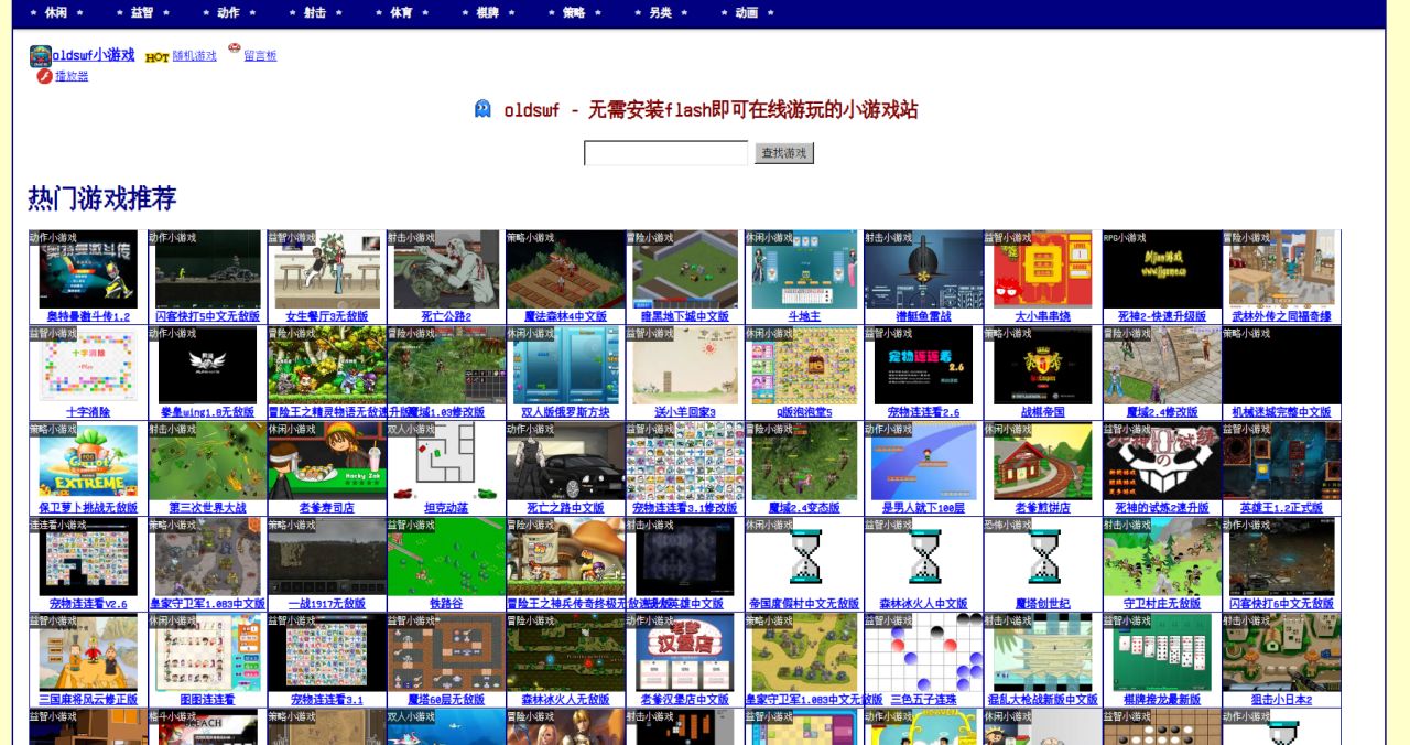 这是一个不需要安装flash就可以在线玩小游戏的网站,它的游戏真的非常多,比如祖玛,狂扁小朋友,死神vs火影等等,在搜索框输入无敌版,可以搜索到5000多个游戏,可以让你爽到爆炸
