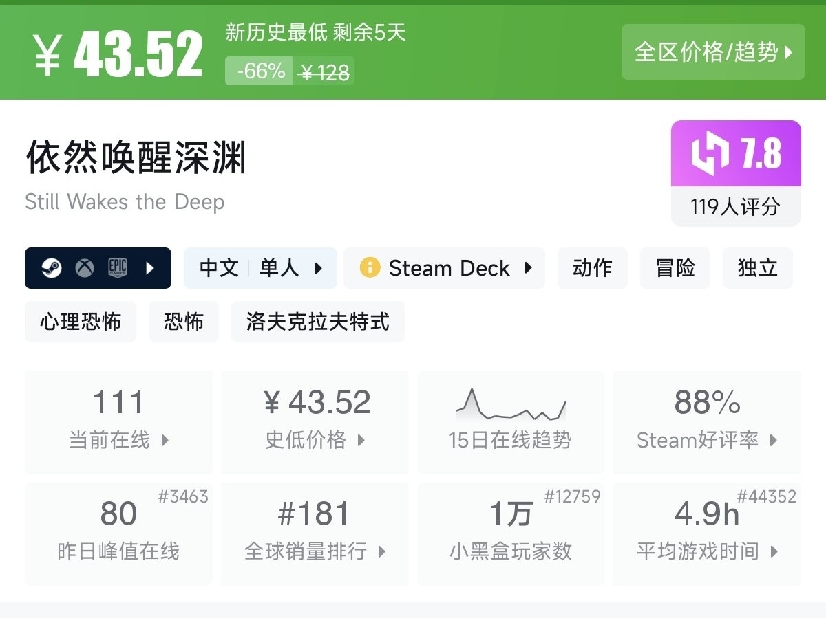 深海石油平台心理恐怖生存!1975年北海钻井工人被困绝境,无武器直面风暴与未知深渊威胁。沉浸式环境叙事与第一人称压抑氛围获赞,但步行节奏缓慢与交互单一引发两极评价。