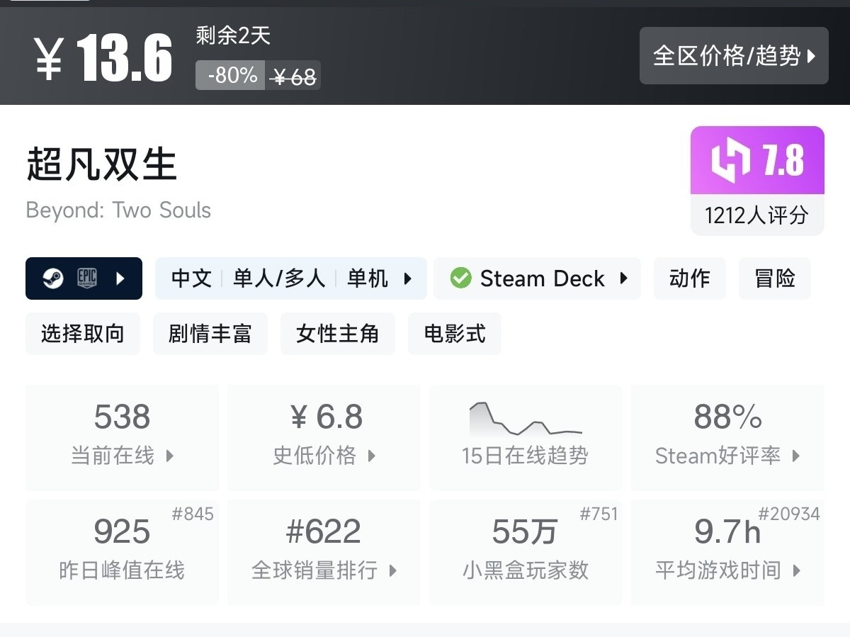 互动电影叙事佳作!双时间线演绎超能力少女成长,威廉·达福演技封神。PS移植版优化逊色,但情感张力被誉“超越《底特律》”。