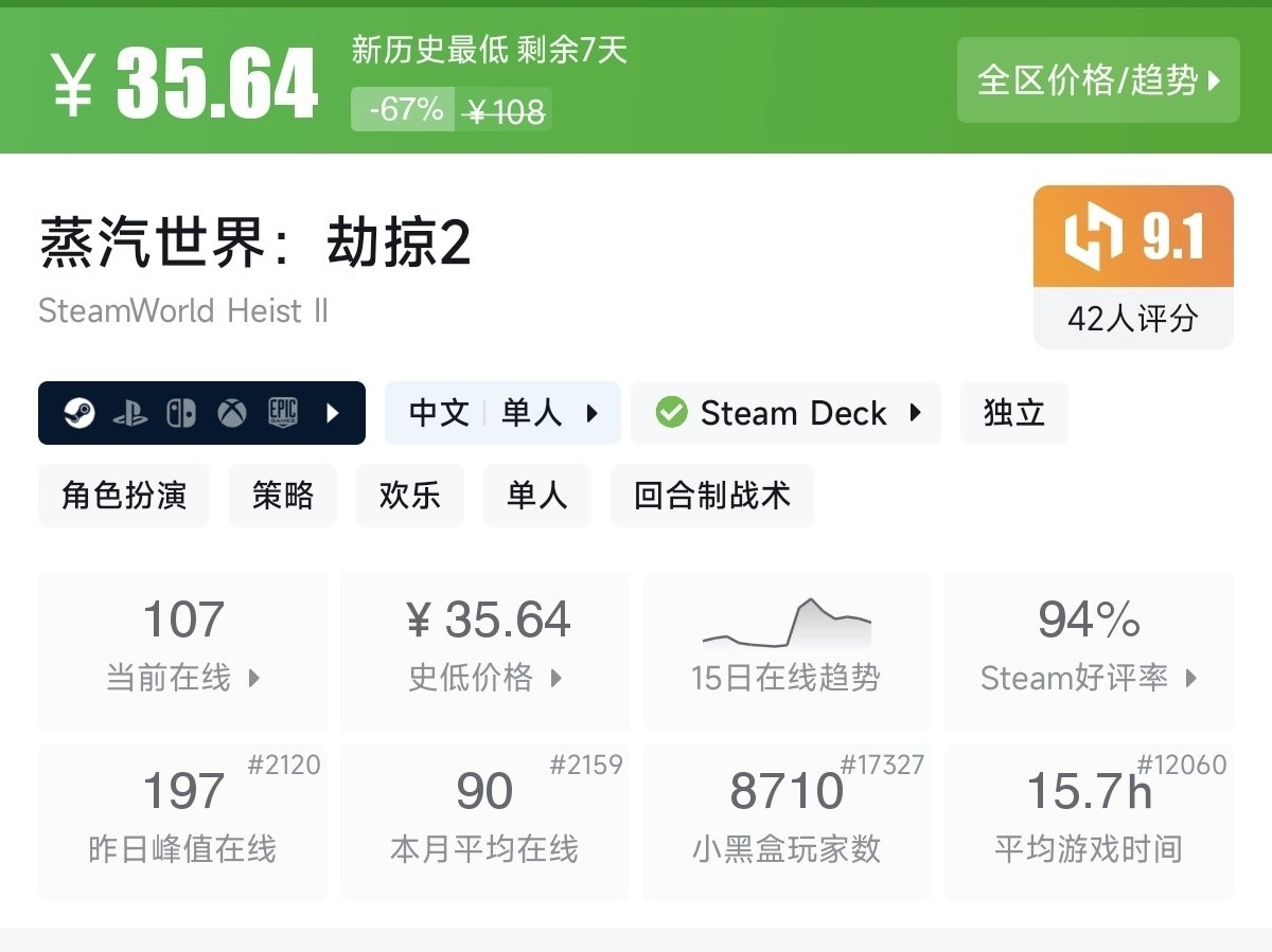 横版射击+卡牌构筑!续作深化舰船改造与战术策略,蒸汽朋克美术独树一帜。玩家称“小而精的续作标杆”,主线流程约10小时略短。