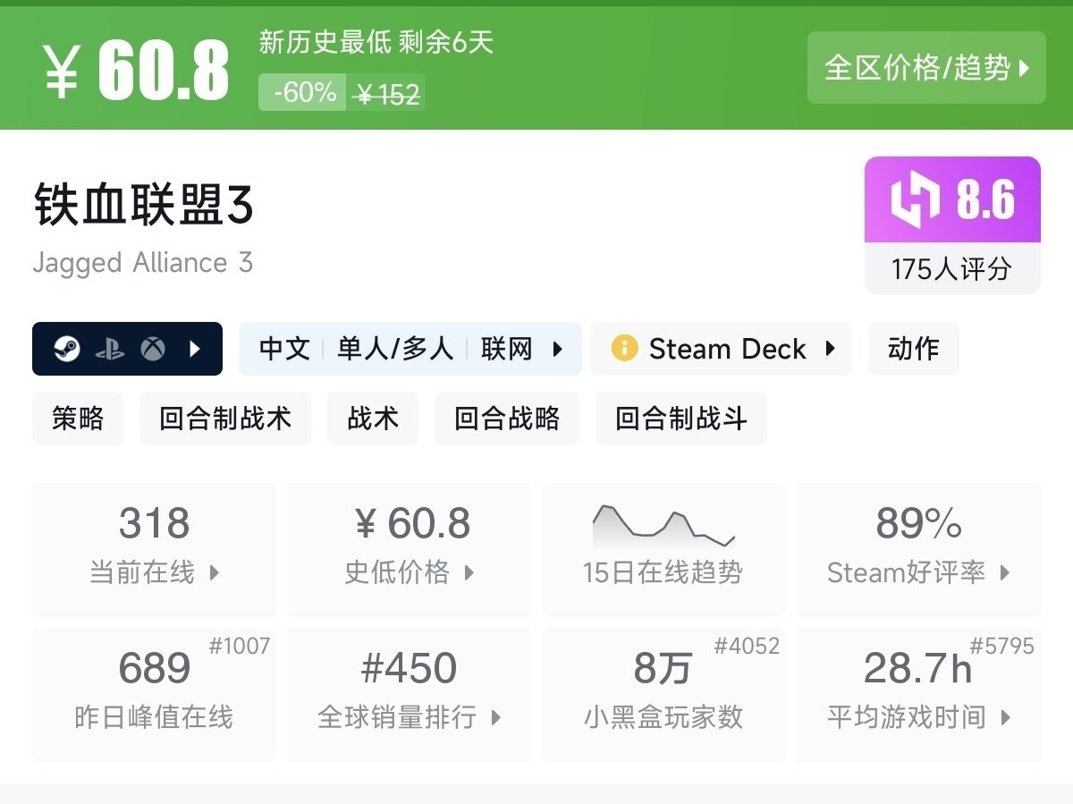 二战战场革新作!强调小队协同与建筑破坏,火风暴吃鸡模式失败告终。Steam褒贬不一,赞其“枪械手感顶级”,批“内容更新半途而废”。