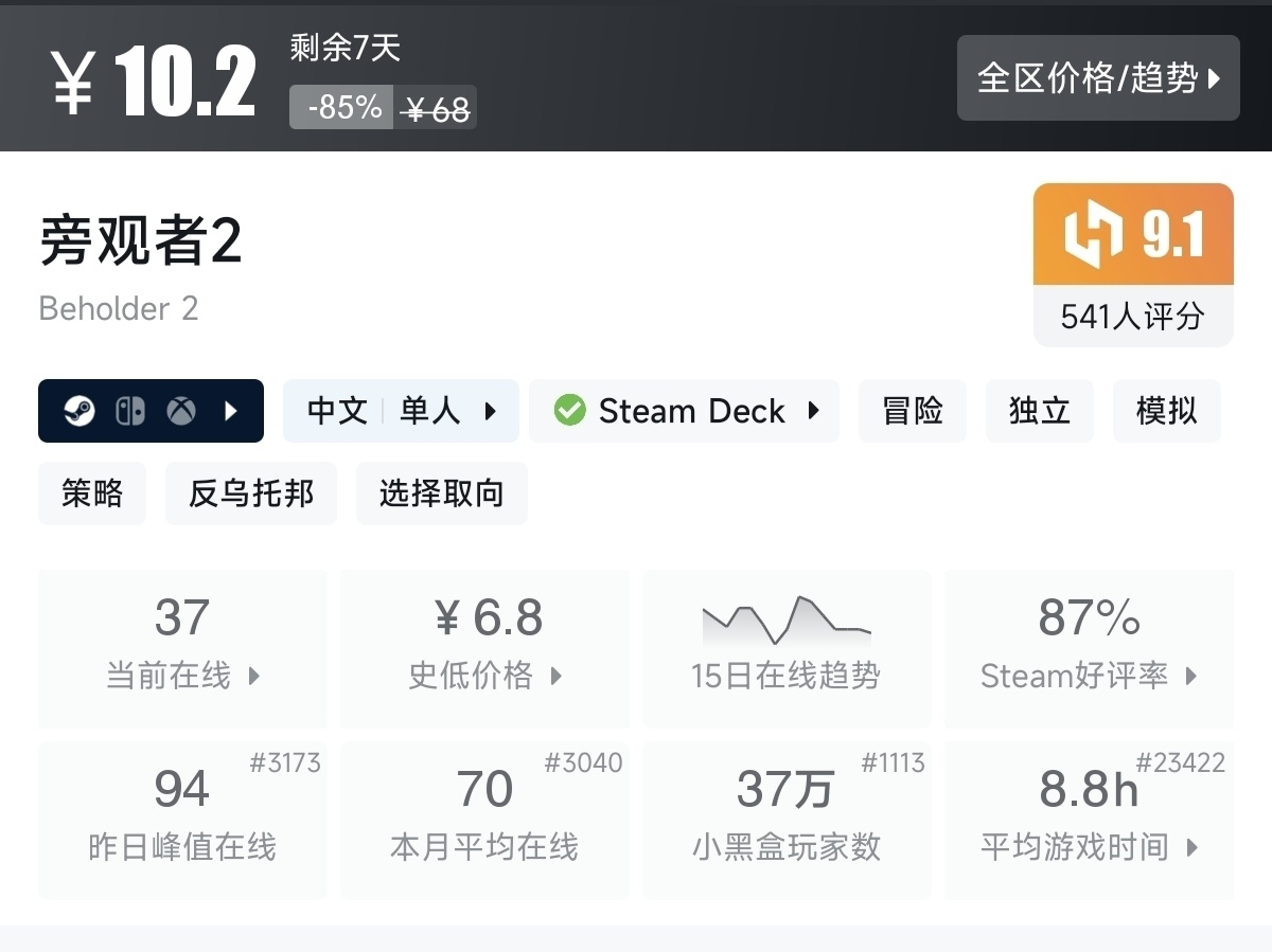 体制内晋升之恶!公务员系统层层剥削,黑市交易与告密系统深化策略。剧情多分支超越前作,但核心玩法重复致新鲜感下降。