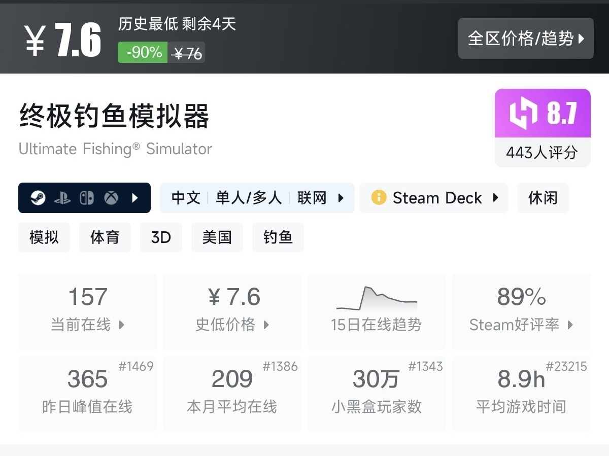 硬核垂钓模拟!全球知名钓场真实还原,20类鱼种生态拟真。VR模式沉浸感封神,但DLC内容分割争议不断。