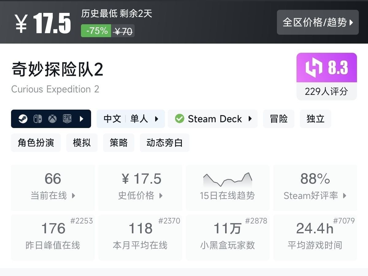 肉鸽探险启蒙作!19世纪科考队丛林求生,理智值与负重管理硬核。怀旧玩家赞“回合制《饥荒》雏形”,但UI老旧劝退新人。
