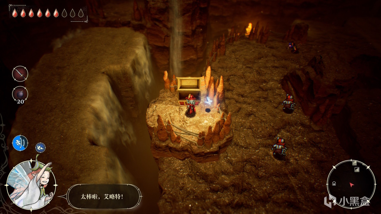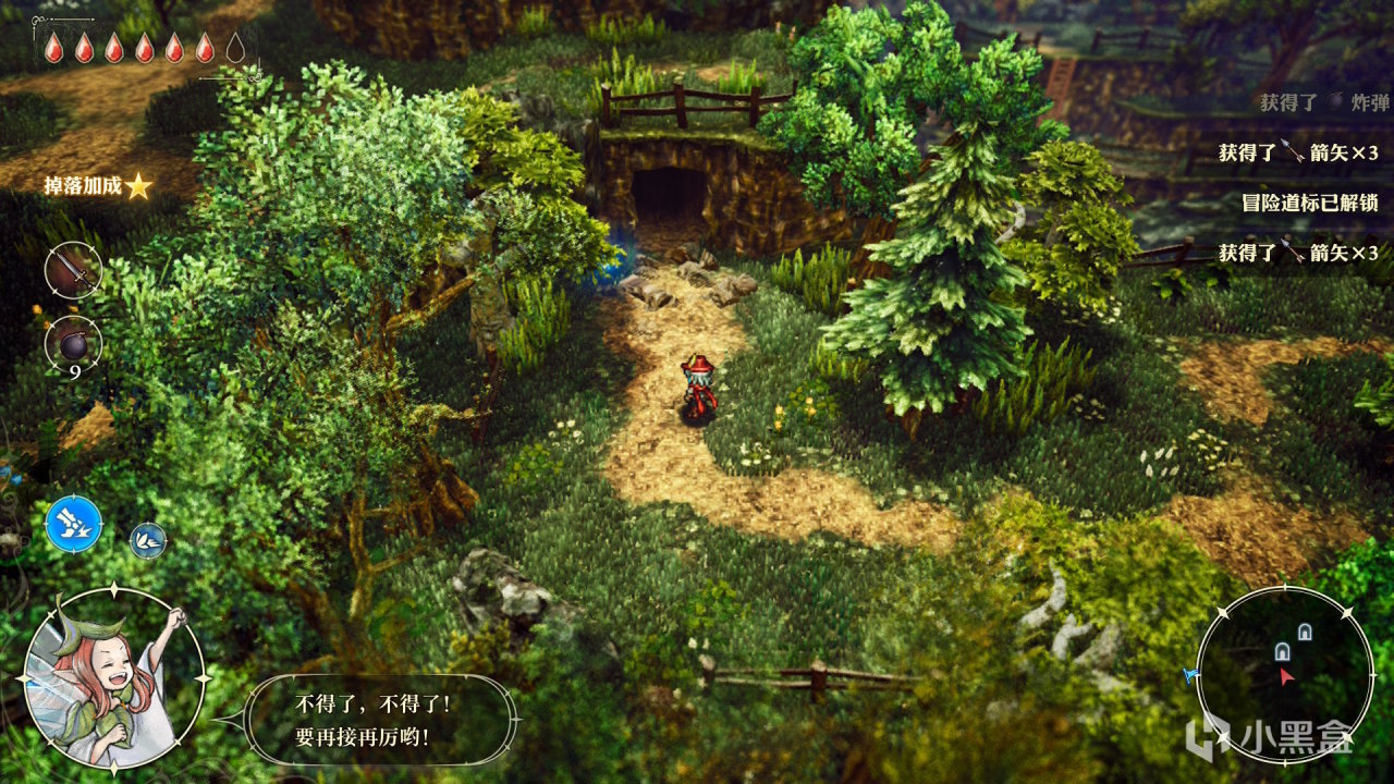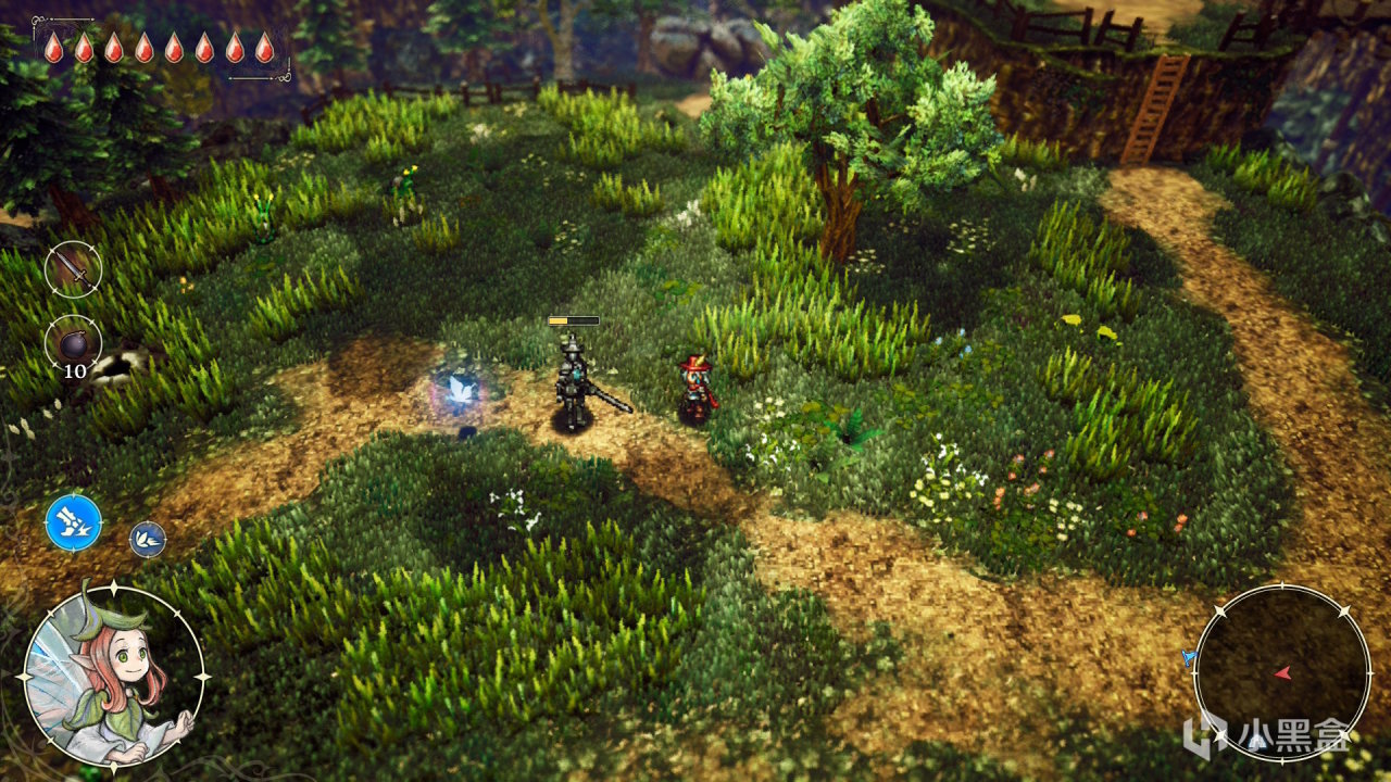 本作上來就解鎖了三種武器劍,弓箭,炸彈,就我而言我覺得弓箭是有點垃圾的,最喜歡用的是劍,就算敵人離得很遠也能依靠本作的新機制,我的小精靈飛飛用右搖桿飛到怪身邊然後我直接秀一波飛雷神將其拿下。
