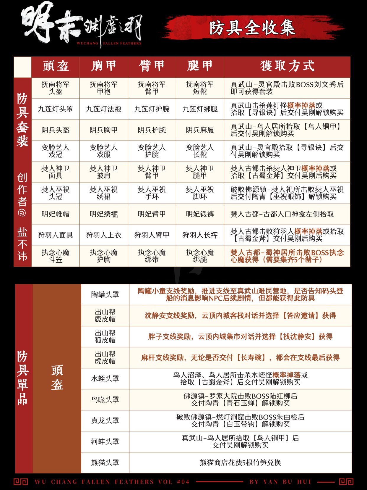 部分防具需完成特定支线获取,9件单品如下: