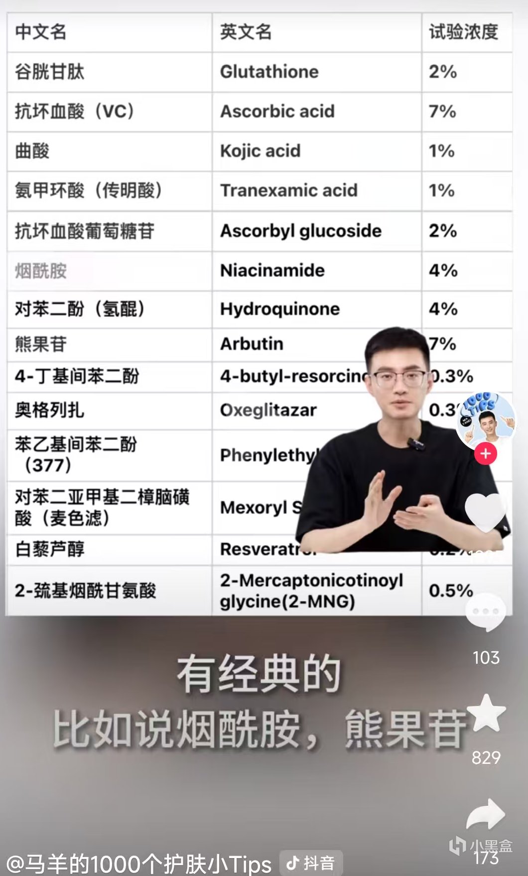 [2]14种美白提亮成分排行耪,抖音,马羊的1000个护肤小tips,2024-09-26