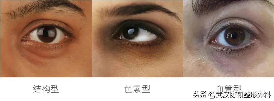 结构型黑眼圈。结构型黑眼圈分为先天性和后天性。先天性原因主要是泪槽形成的阴影,随着年龄的增长,皮下脂肪的丢失以及韧带表面皮肤的逐渐变薄,加重沟槽样凹陷,从而加重黑眼圈。后天性原因主要由于年龄的增长、长期紫外线照射,下脸皮肤松弛、眶脂膨出、水肿等形成的阴影越发明显,加重黑眼圈的形成。