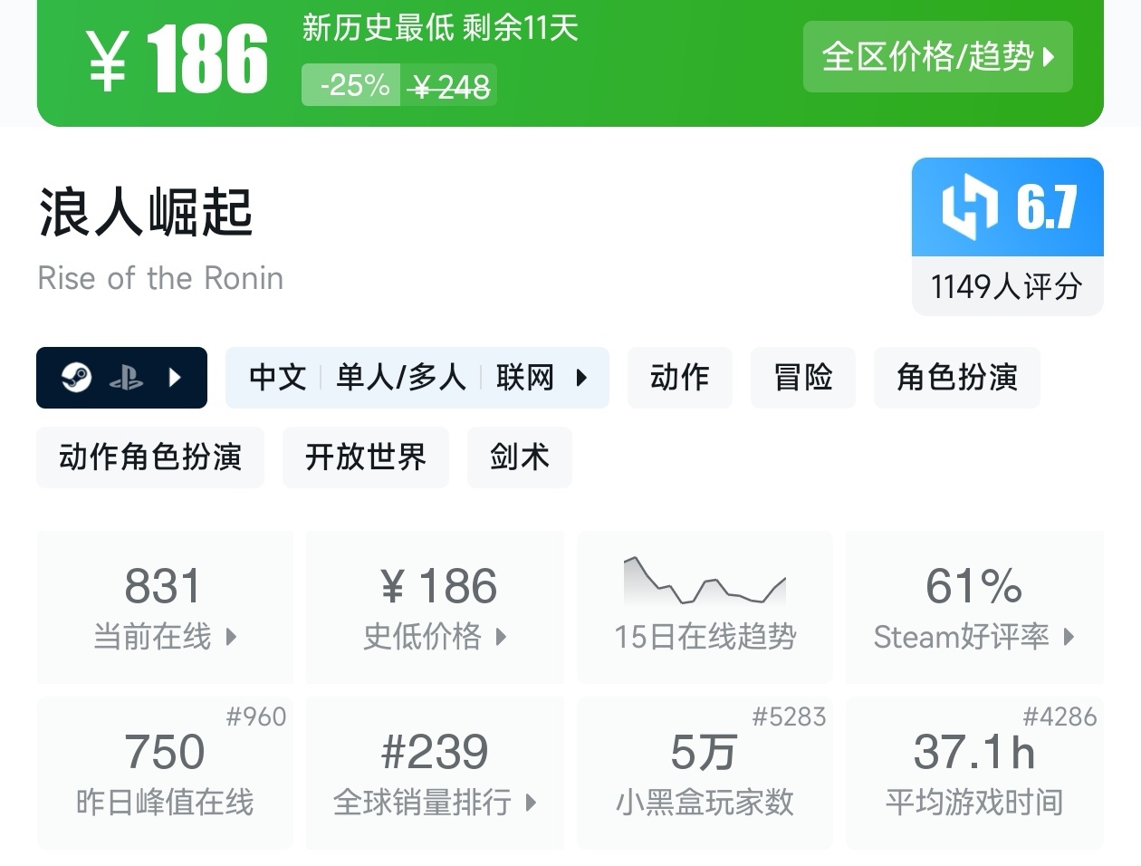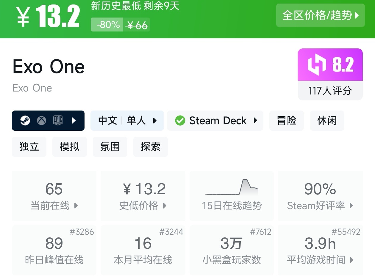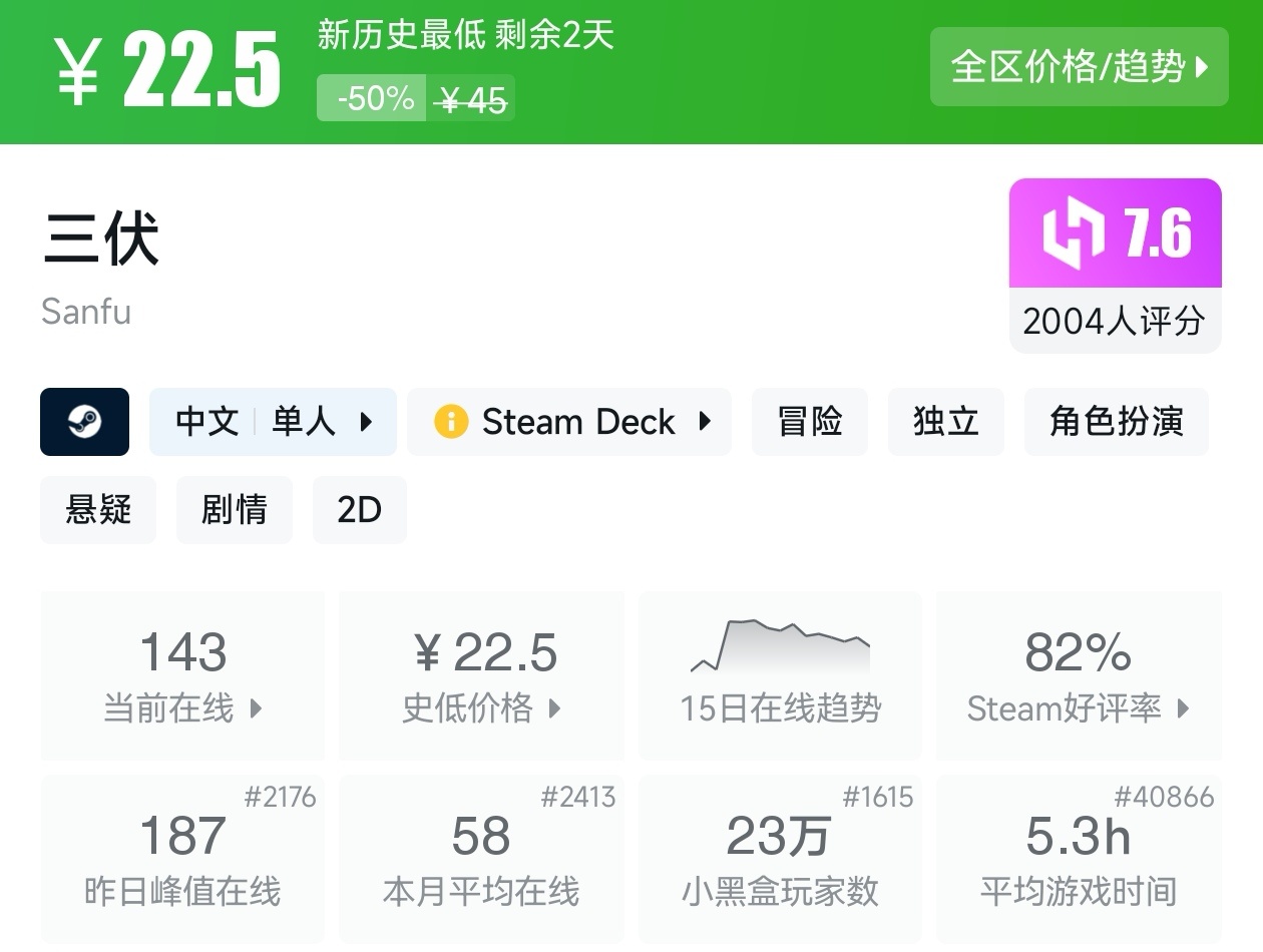 大家好,没错,又是我,你们的老朋友亦然,在最近几天,Steam又迎来了很多新史低游戏,其中就有很多各位盒友耳熟能详的游戏,还有一些折扣仅剩一天的游戏,其实新史低你游戏买起来最有安全感,因为在很长一段时间都不会更低,我将为各位进行一个汇总,希望我的汇总,能够帮助各位盒友挑选心仪的游戏。