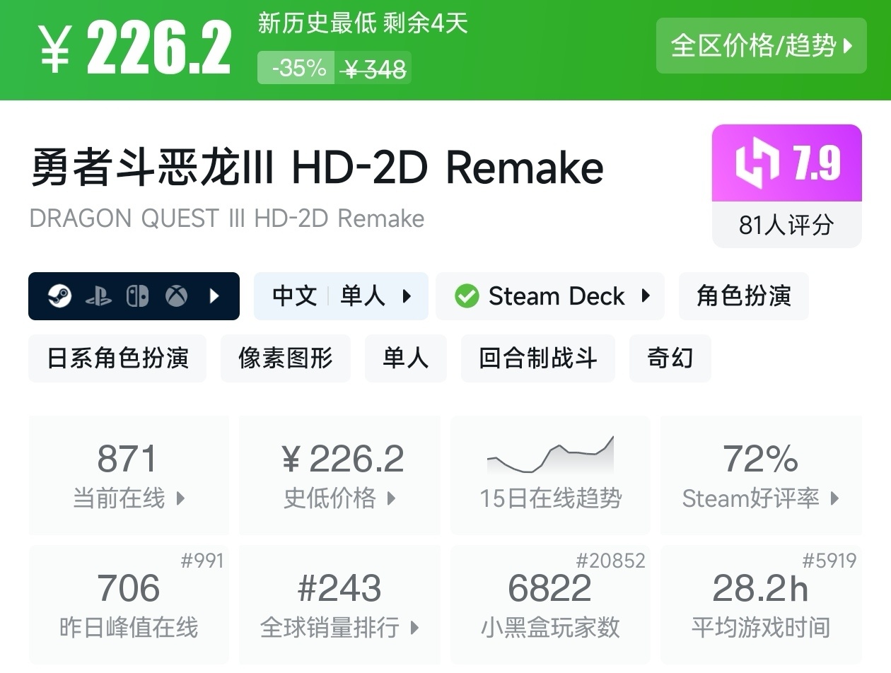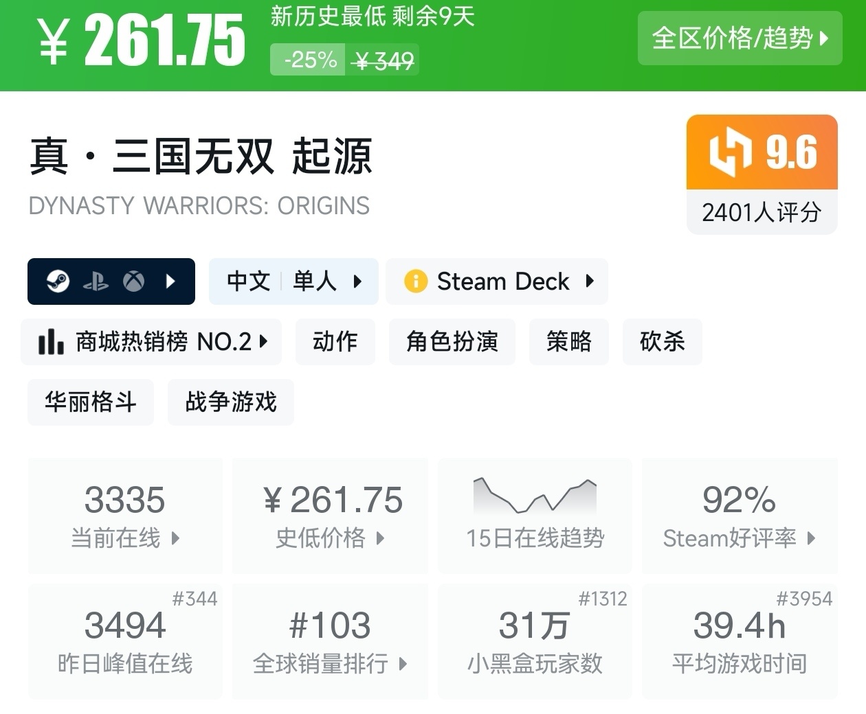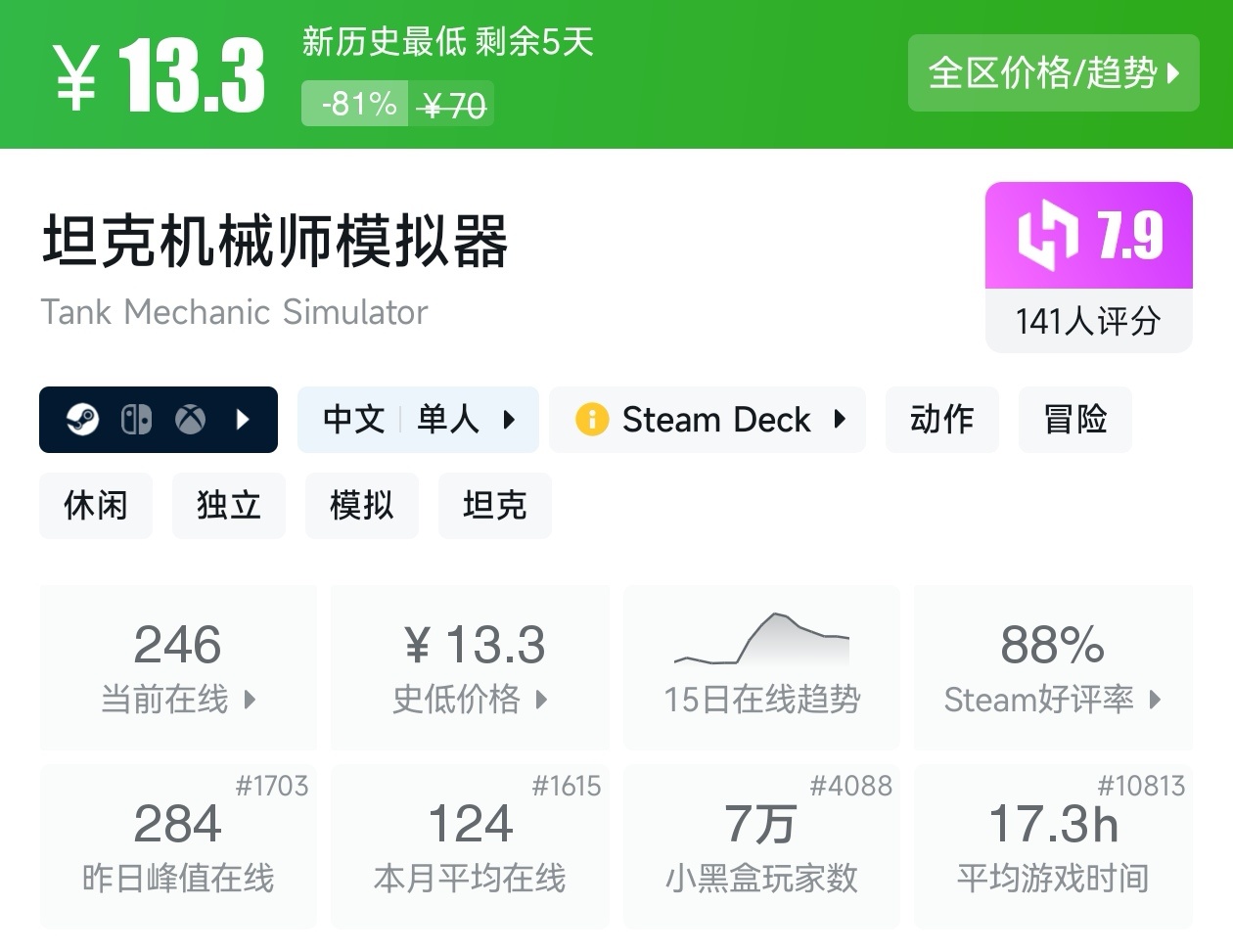 大家好,没错,又是我,你们的老朋友亦然,在最近几天,Steam又迎来了很多新史低游戏,其中就有很多各位盒友耳熟能详的游戏,还有一些折扣仅剩一天的游戏,其实新史低你游戏买起来最有安全感,因为在很长一段时间都不会更低,我将为各位进行一个汇总,希望我的汇总,能够帮助各位盒友挑选心仪的游戏。