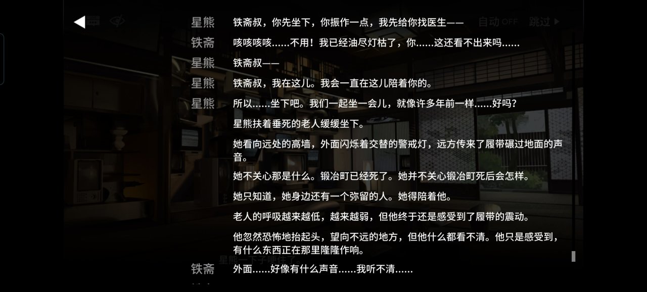 星熊的回來也是他一手策劃的,就是爲了最後的收尾,而對此刻的星熊來說,她回來這裏是爲了三件事,一是爲了面對幼年父親給她留下的恐怖回憶(這是爲了面對自己與生俱來的種族天賦,接受它);二是面對20年前自己暴走的結果(這是爲了面對自己以前的黑幫身份,包含了自己過去的志氣和對俠義的嚮往);三是爲了今日的自己,斬斷過去的因果,在遇到了陳和羅德島後許許多多的人,星熊將能坦然面對舊日的一切,成長爲新的自己。