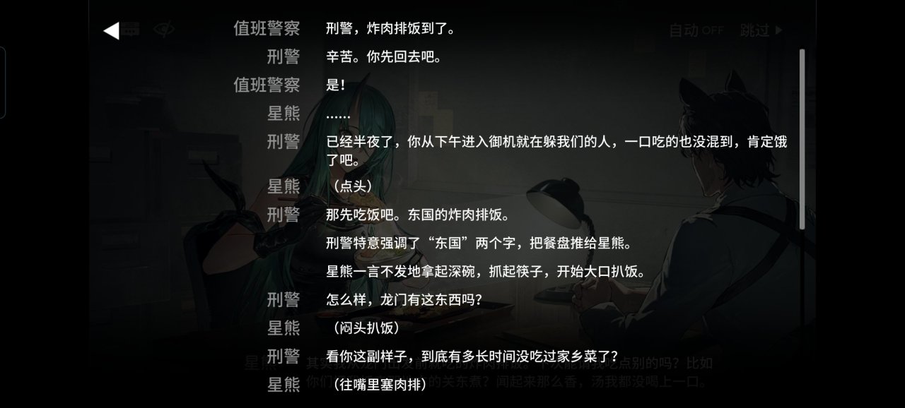 到了警局的星熊就像回家了一樣喫着米浴最喜歡的豬扒飯那叫一個香,而東國的警察也清楚星熊身上的案件已經過期了拿星熊沒什麼辦法,於是兩個警察就在審訊室開始了友好的交流。