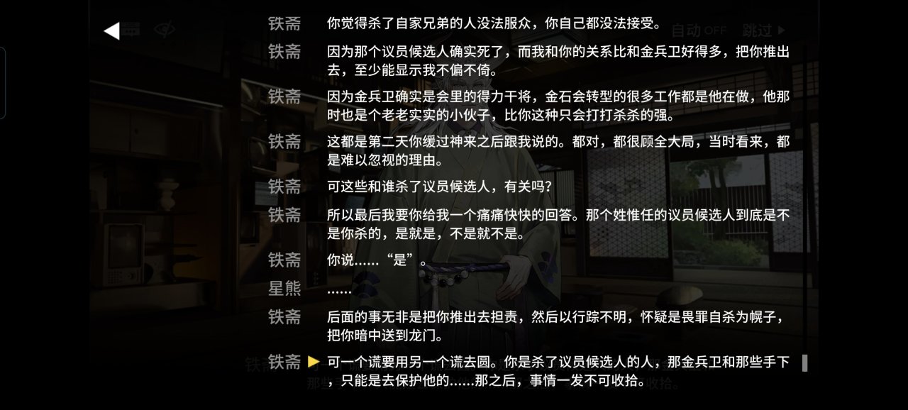 但是見到了鐵齋叔後星熊更加一頭霧水了,老爺子已經被金兵衛架空,包括幫會和表面企業,信也是金兵衛寫得,這場面接下來的劇情總感覺已經看過了,幾十次了。