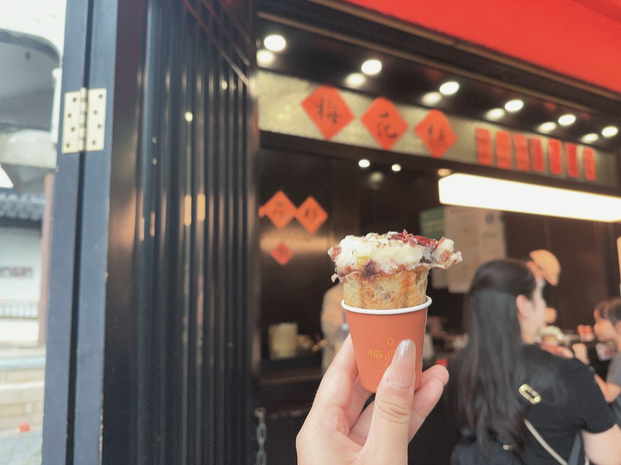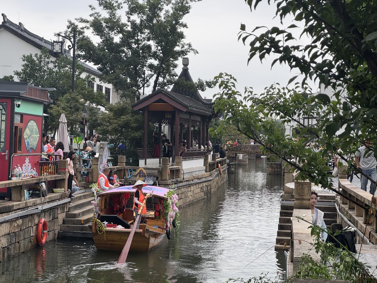 苏州江南水乡的风景非常好看,感觉是悠然自在的美很惬意,可惜晕船没有去坐这摇船体验🥹乱七八糟买了一堆明信片啥的。吃了梅花糕,挺漂亮的诶,之前听说过江苏甜但是没想到这么甜,梅花糕甜的猫猫正步踢回四川哈哈哈哈哈哈,口感糯糯的很喜欢,小红豆泥很细腻蛮好吃的。