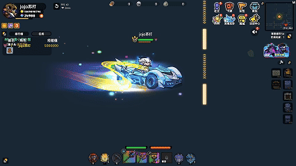 水陸兩棲(可跨越水/沼澤/岩漿)、雙擊加速、下車帶盾的超跑坐騎上線。可以在沙盒地圖飆車,安全區還有燈效交互。