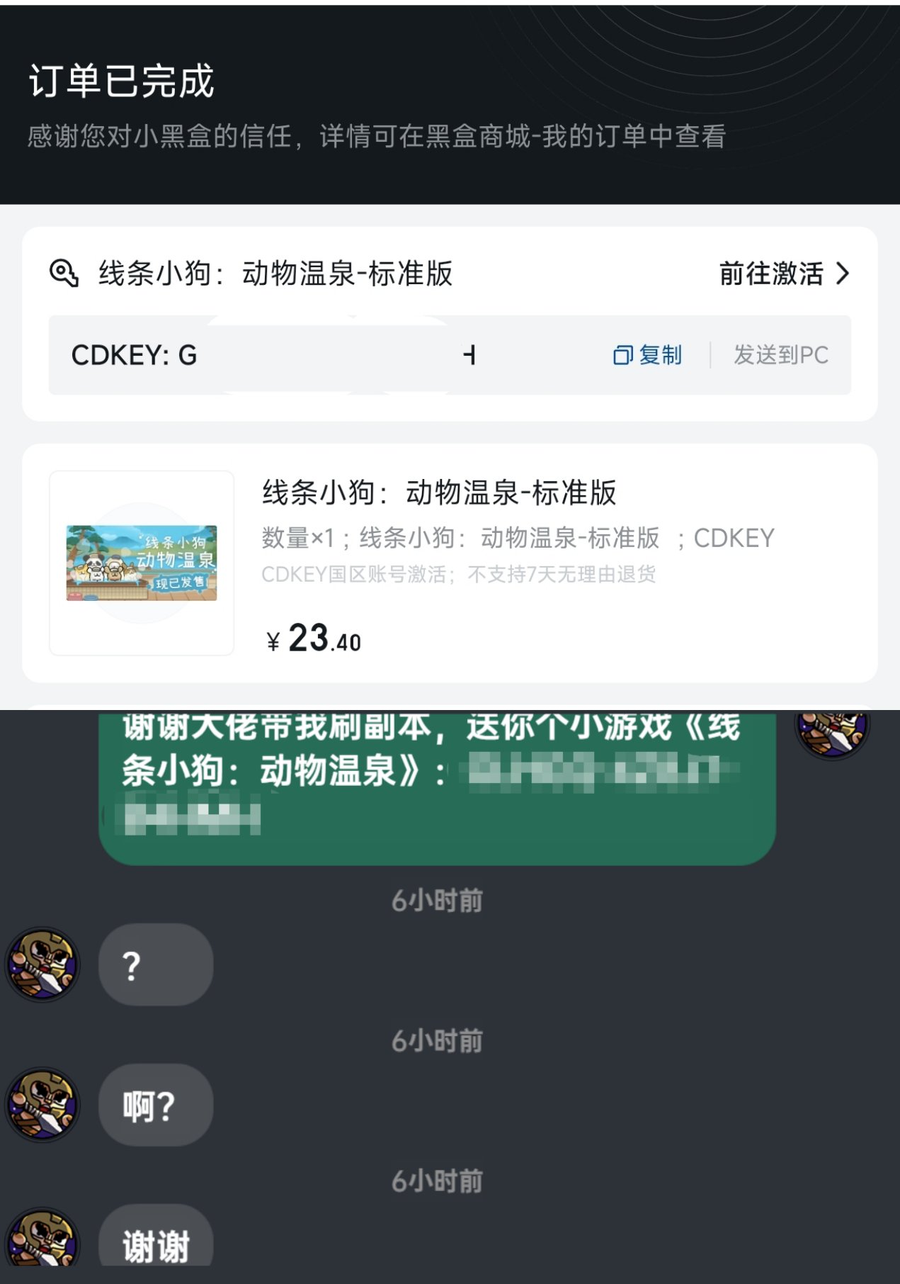 立刻打開小黑盒買個遊戲激活碼,送給這位老哥。給老哥整懵了,第一反應給我回了個“?”。願意無償抽空帶萌新刷低級副本,這位老哥就是彥祖!