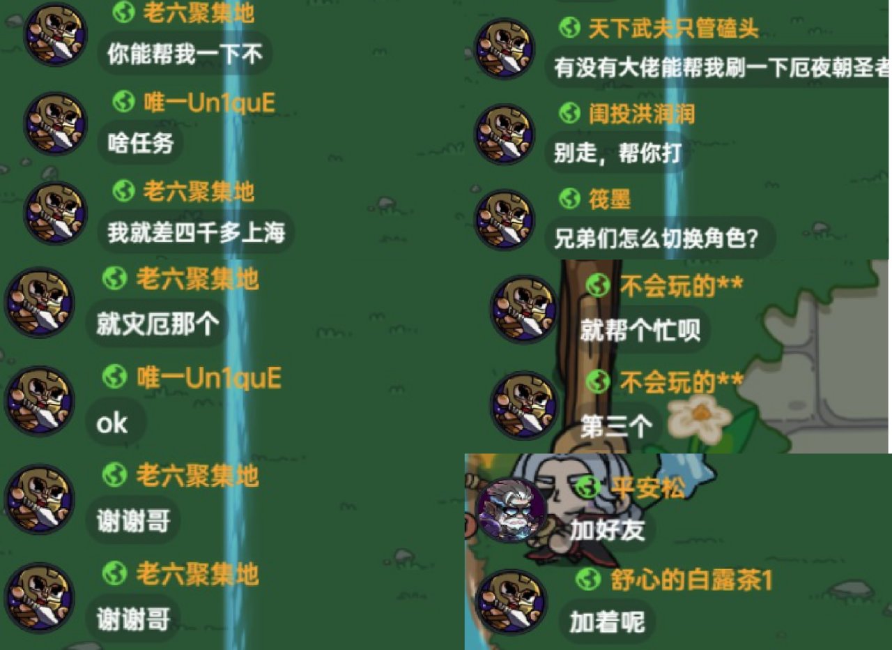 最近一直在玩新手專屬服務器,沒有高強度PVP,整體氛圍和諧很多。公屏裏時常會有萌新求助,老玩家迴歸提問(例如,切換英雄界面移到了遊戲內卡牌)。只要態度好,基本上還是有熱心老哥。
