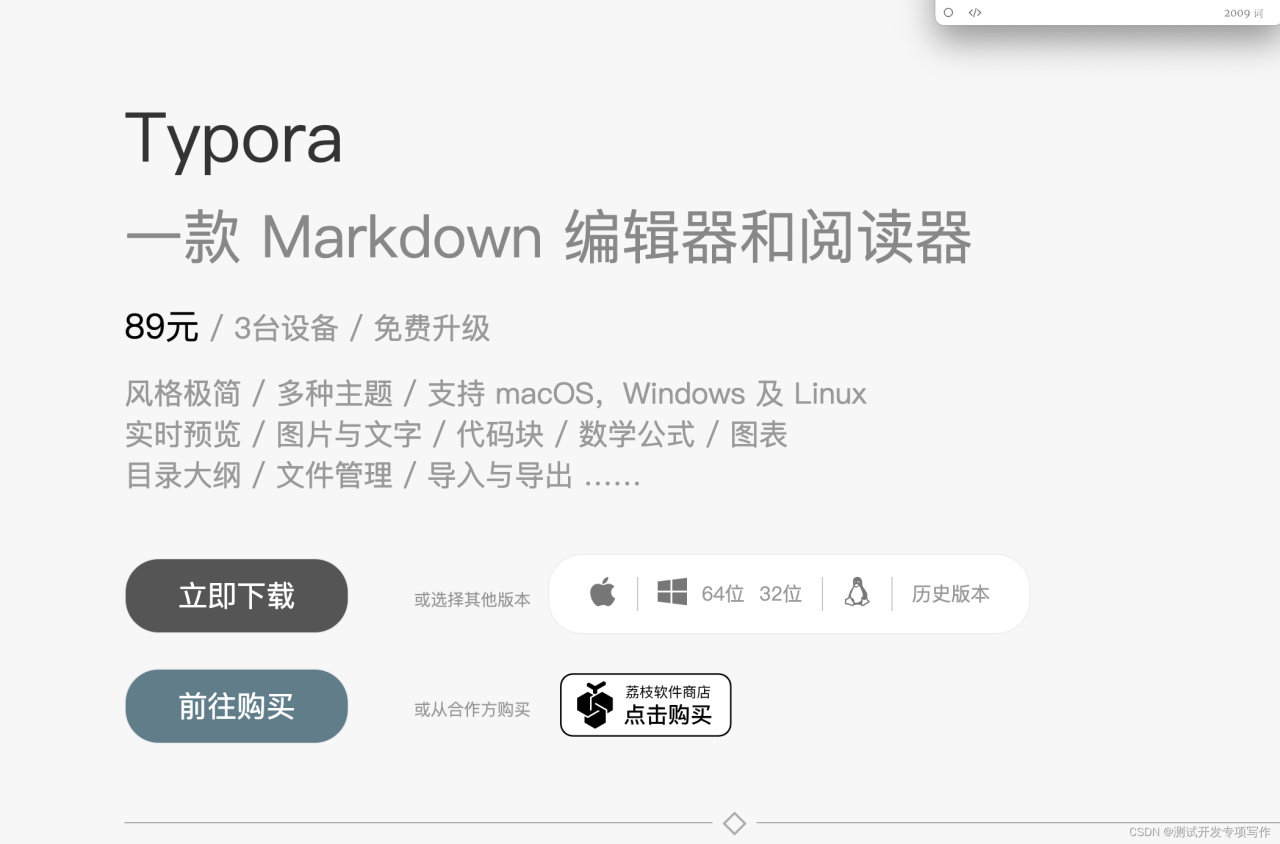 Markdown写作神器,极简设计(真的真的非常简洁)。