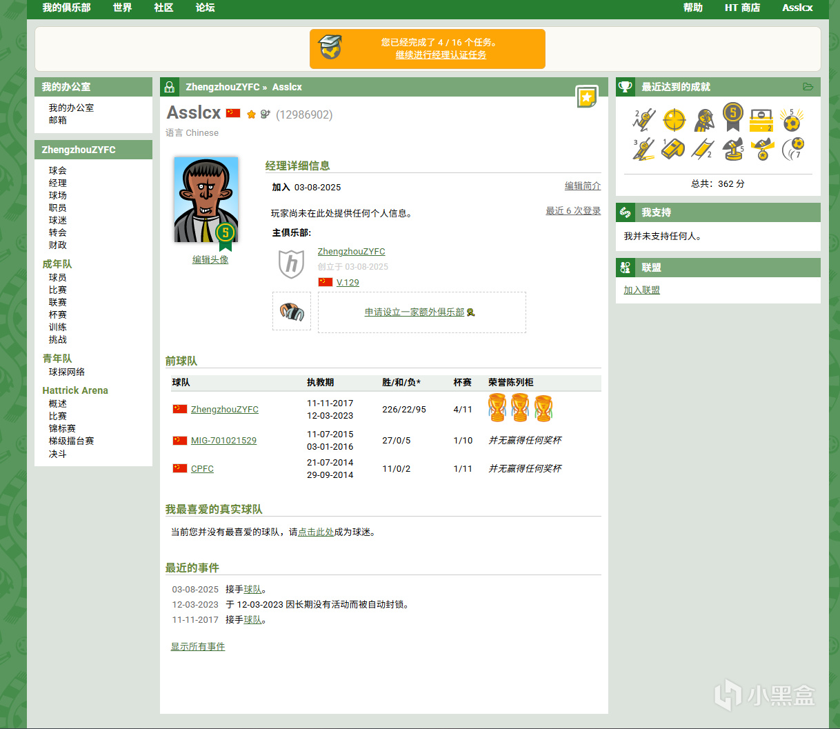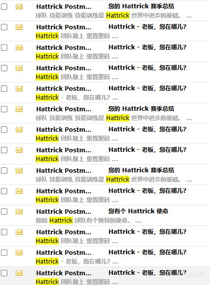 大家可以发现我收到了很多这个邮件,因为当时去部队了和我的球队日渐生疏,最后导致了我的下课,可能我的球员也以为我不要他们了吧任他们在联赛堕落。但是可以从头再来重续球队往日,Hattrick会记录你之前的一切荣誉(很舒服,像成就系统)