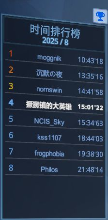 先说这个是因为在这种类型的游戏里我很少见到有排行榜这种东西存在,排行榜分为时间、分数和无尽三种排行榜,排行榜每月刷新的,只是想上榜体验一下的盒友们可以在月初的时候打。