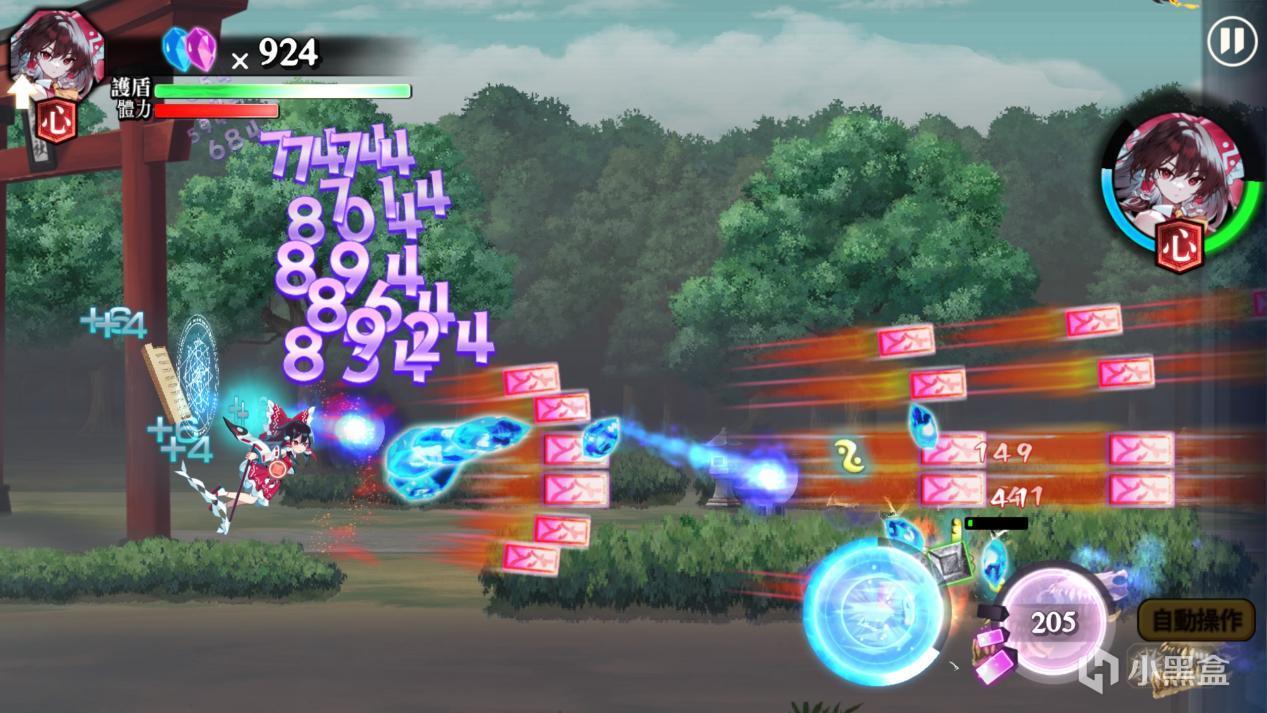 当然,对于在闲暇时间(指坐在工位上偷偷摸鱼的时候)也能随时随地开一局的手游,本作也为更想轻松游戏的玩家或者STG苦手玩家提供了全自动模式,玩家可以放任角色根据AI来自动完成战斗以及掉落物拾取,也可以手动释放break以及各种想起卡技能。这下在老板眼皮子底下也不用担心被gank了,轻松实现摸鱼自由。