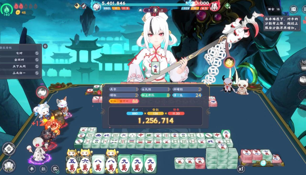 湊成這些番型後,你的金幣也會顯著增長,以至於到後期如果你無法湊出其他高番數的番型時,得益於主動技能,起碼清一色絕能成爲你最容易、也是最常用的打法思路。