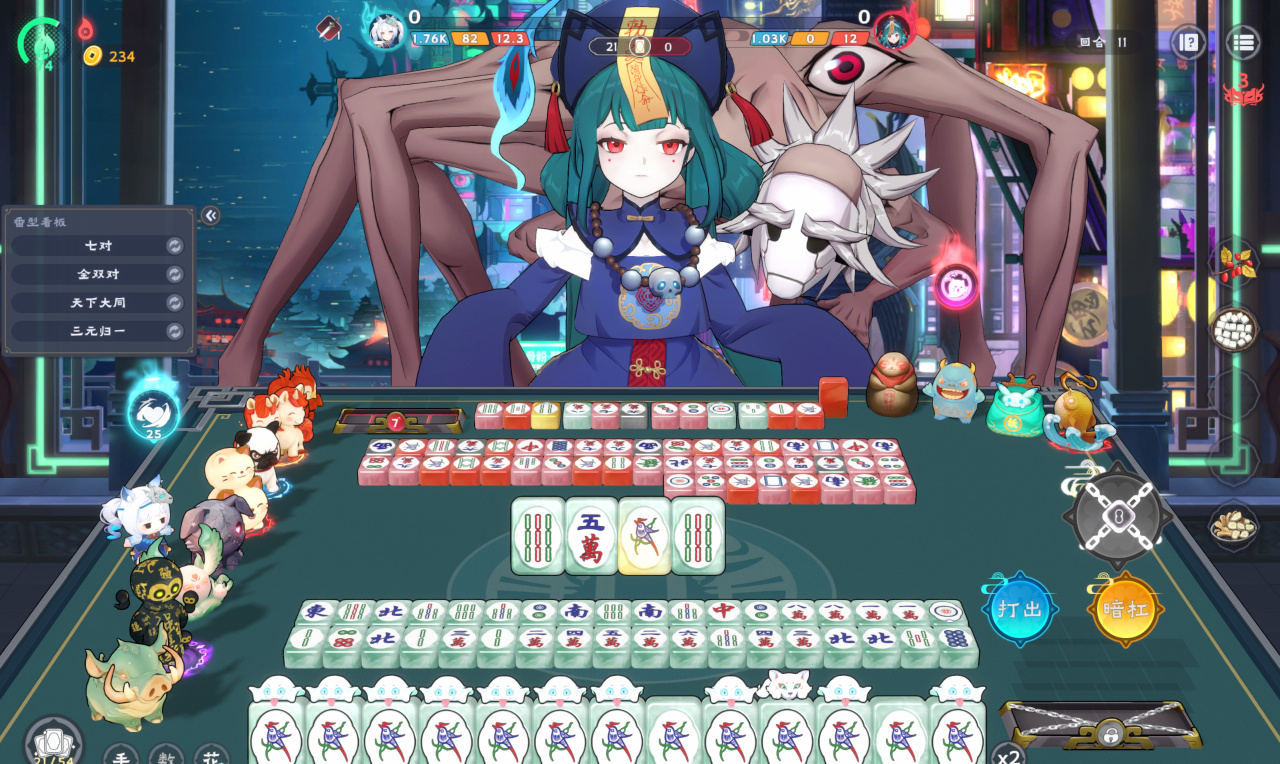 別小看這位羞澀的“賽馬娘”,因爲她最擅長的翻型是對子:馬孃的基本打法基本上都是湊齊7個對子,在後期還未能湊出【天下大同】這樣188番數的牌型前,起碼7對就能穩操勝券。