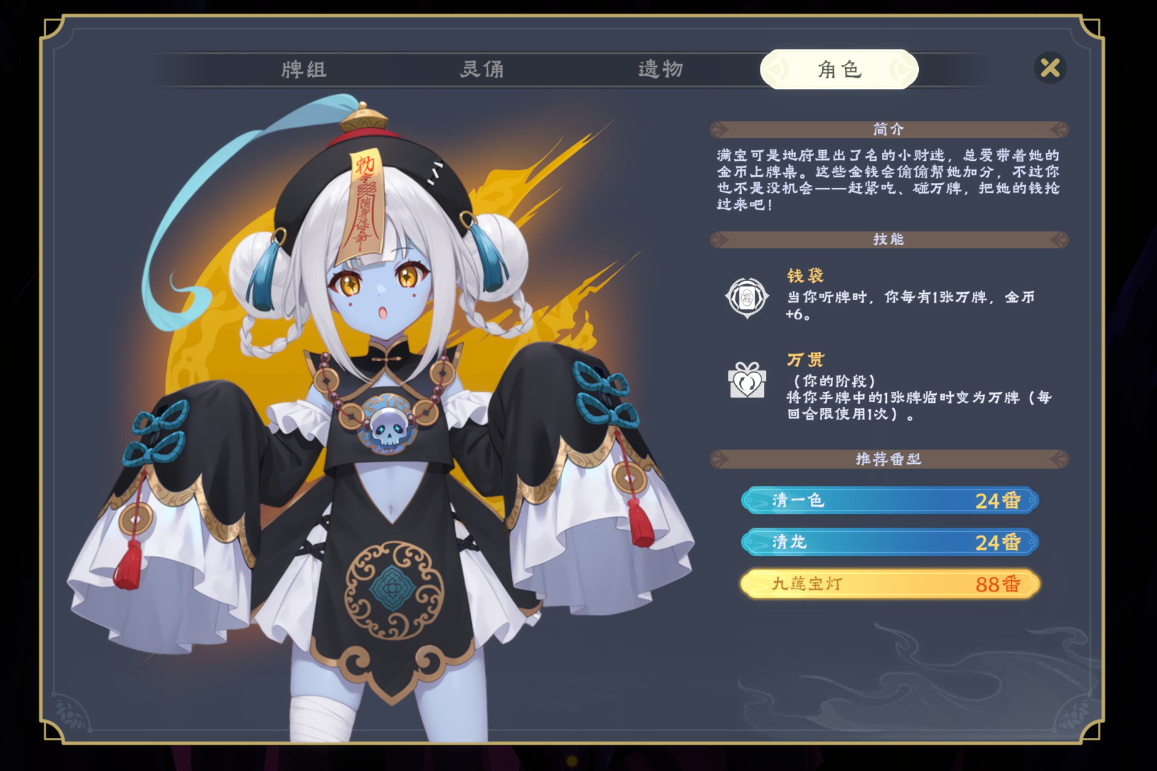 雖說玩家在局內無限制地組合出任意番型,但如果根據角色的特性來打出能夠觸發角色被動BUFF的番型傾向,那麼在聽牌後將會產生額外的附加效果,從而使你的聽牌獲得更高的番型分數。