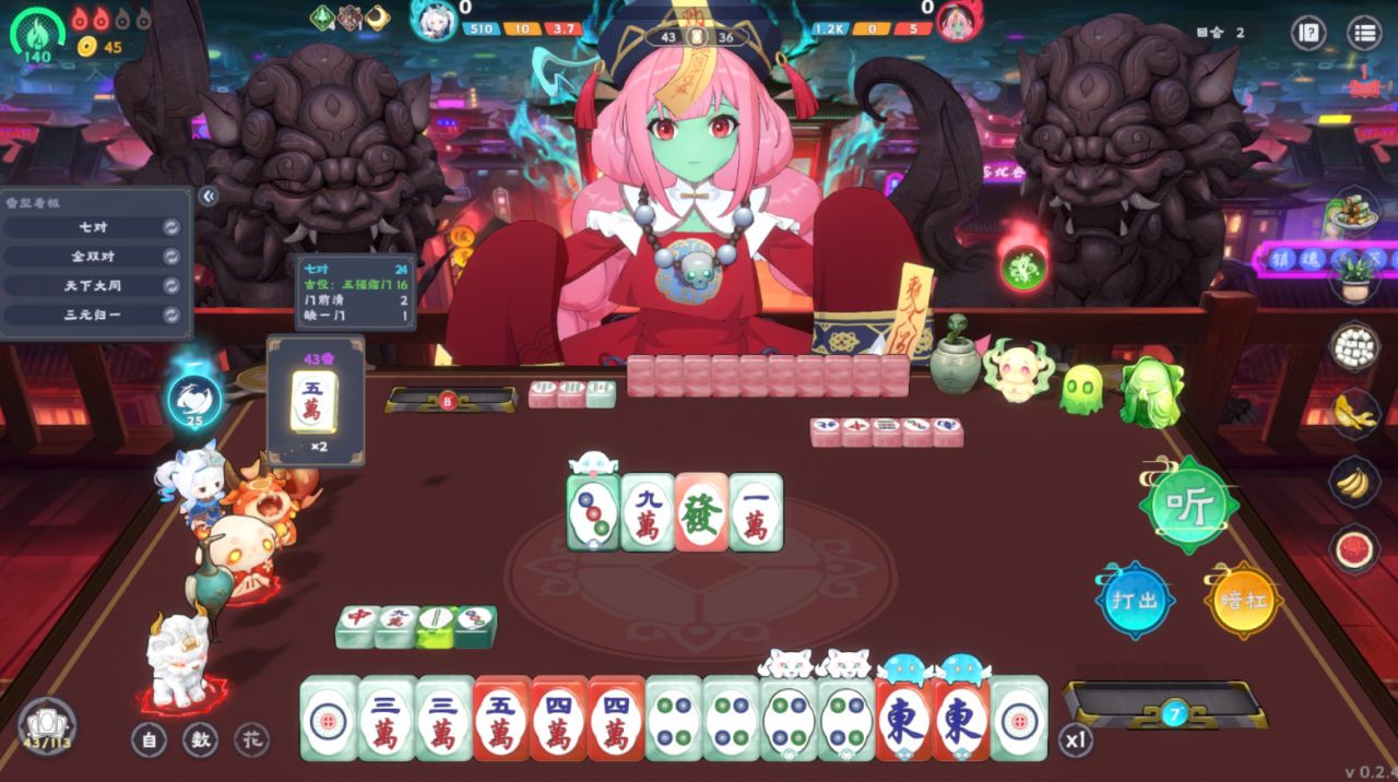得益於地府各位女鬼的熱情陪練,我不僅從零開始對麻將產生了學習動力,更是Get到了肉鴿+麻將的樂趣所在。在短短几十小時的薰陶中,我已經掌握了麻將中的所有番型,體驗到了倍率無限加帶來的“上分”爽感,享受每一場與對桌賽博女鬼的麻將博弈之中。