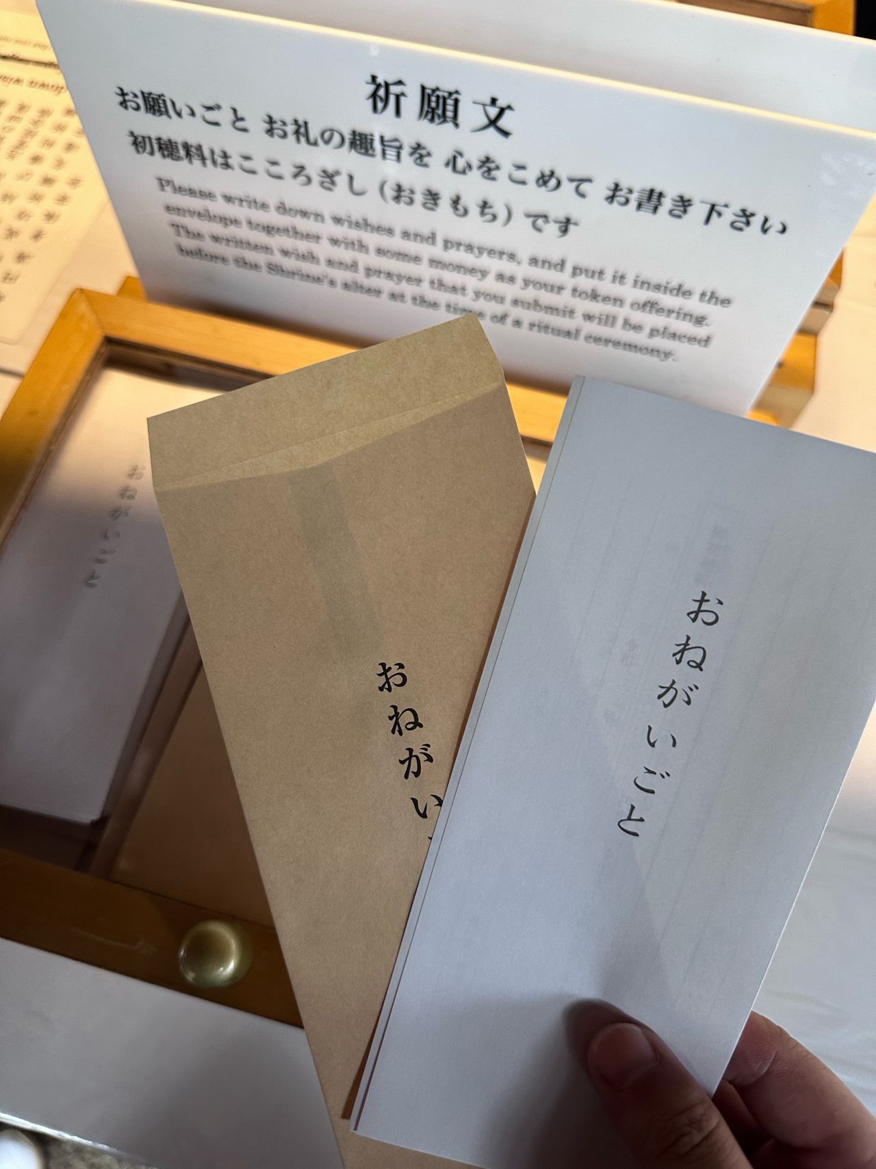 旁边有一排祈愿信,可以把自己的心愿写上并且放进去钱