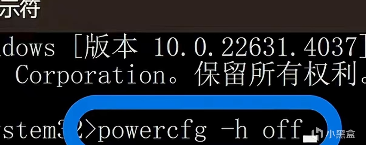 然后,我按照人皮纸的话输入了这串命令:powercfg -h off