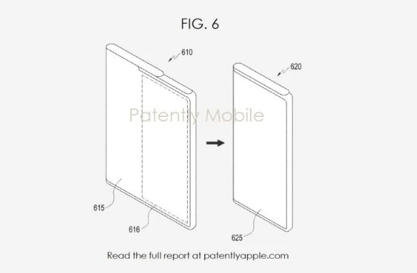 专利图 6 中展示滑动解决方案,采用可滑动 / 可扩展显示屏的形式,可以在需要查看更大的内容或视频时增加显示屏尺寸。
