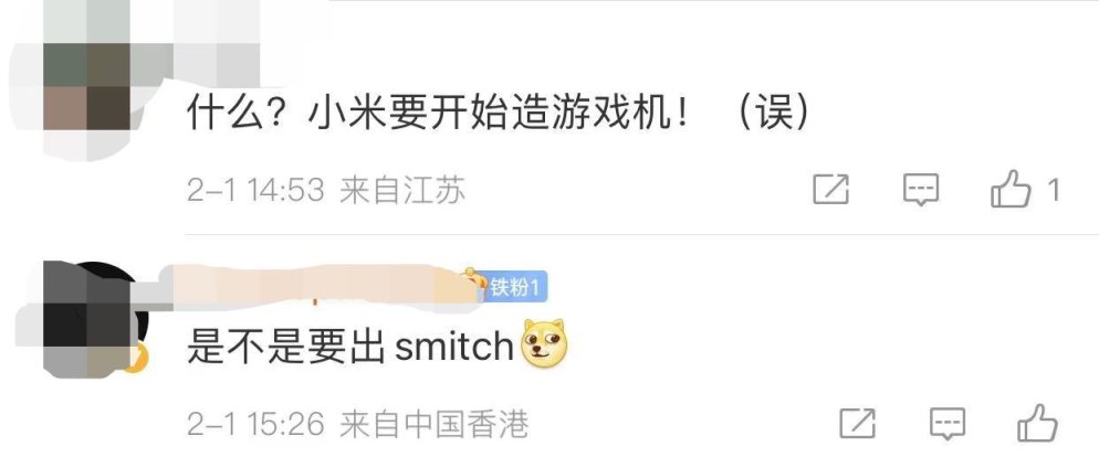 有網友吐槽,怕不是小米也要做遊戲機?就叫Smitch?