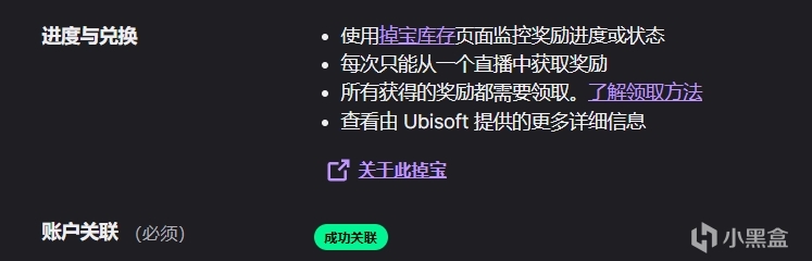 *一定要注意綁定好育碧和 Twitch 賬號,否則獎勵不到賬,綁定頁面 - https://www.twitch.tv/drops/campaigns: