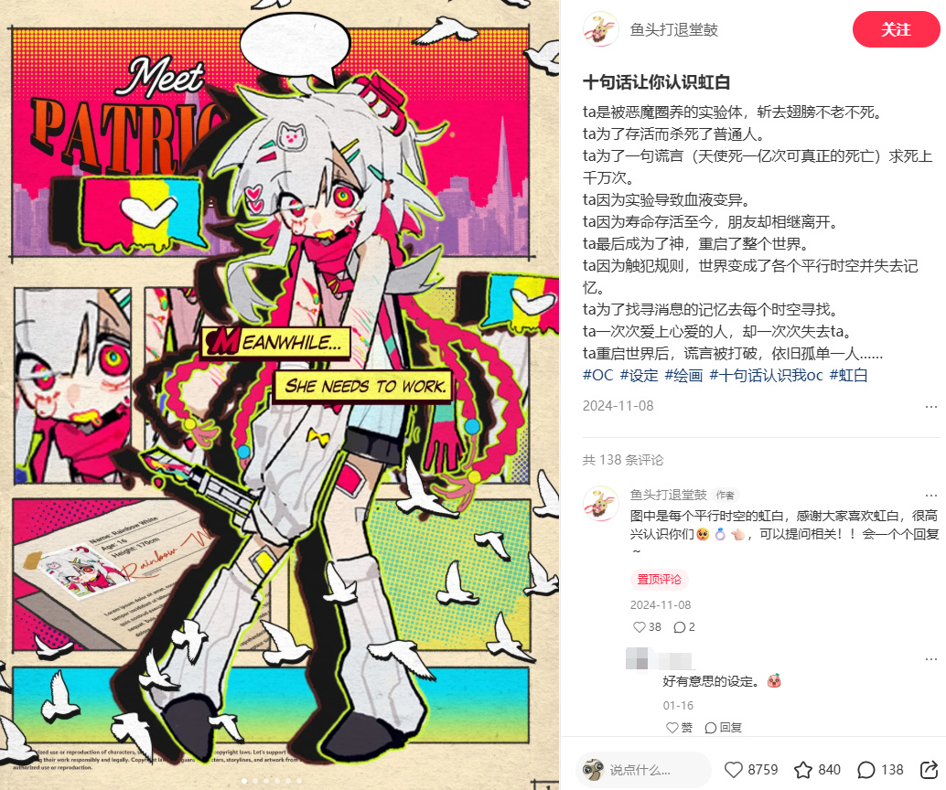 也正是這種自由的表達以及低門檻的特性,讓OC創作成爲無數年輕人情感投射的熱門選擇,並逐漸讓它從小衆亞文化躍升爲一種具有廣泛共鳴的文化符號。