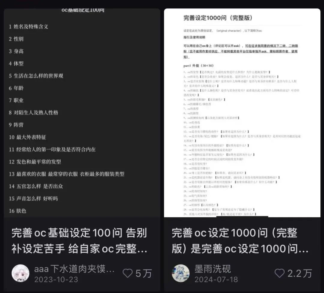 畢竟,這類深度挖掘角色內核的問卷,在過往的OC圈層中,大多是以免費共享的互助形式存在的。