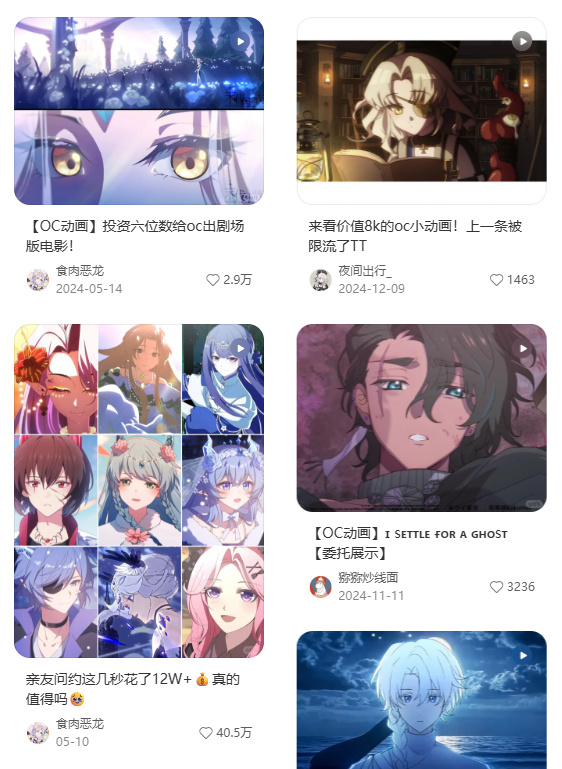有的會約請畫手繪製精美立繪或插畫;有的會委託文手創作專屬故事篇章,甚至還會爲OC定製華麗的服裝或找動畫師製作自己的OC動畫……